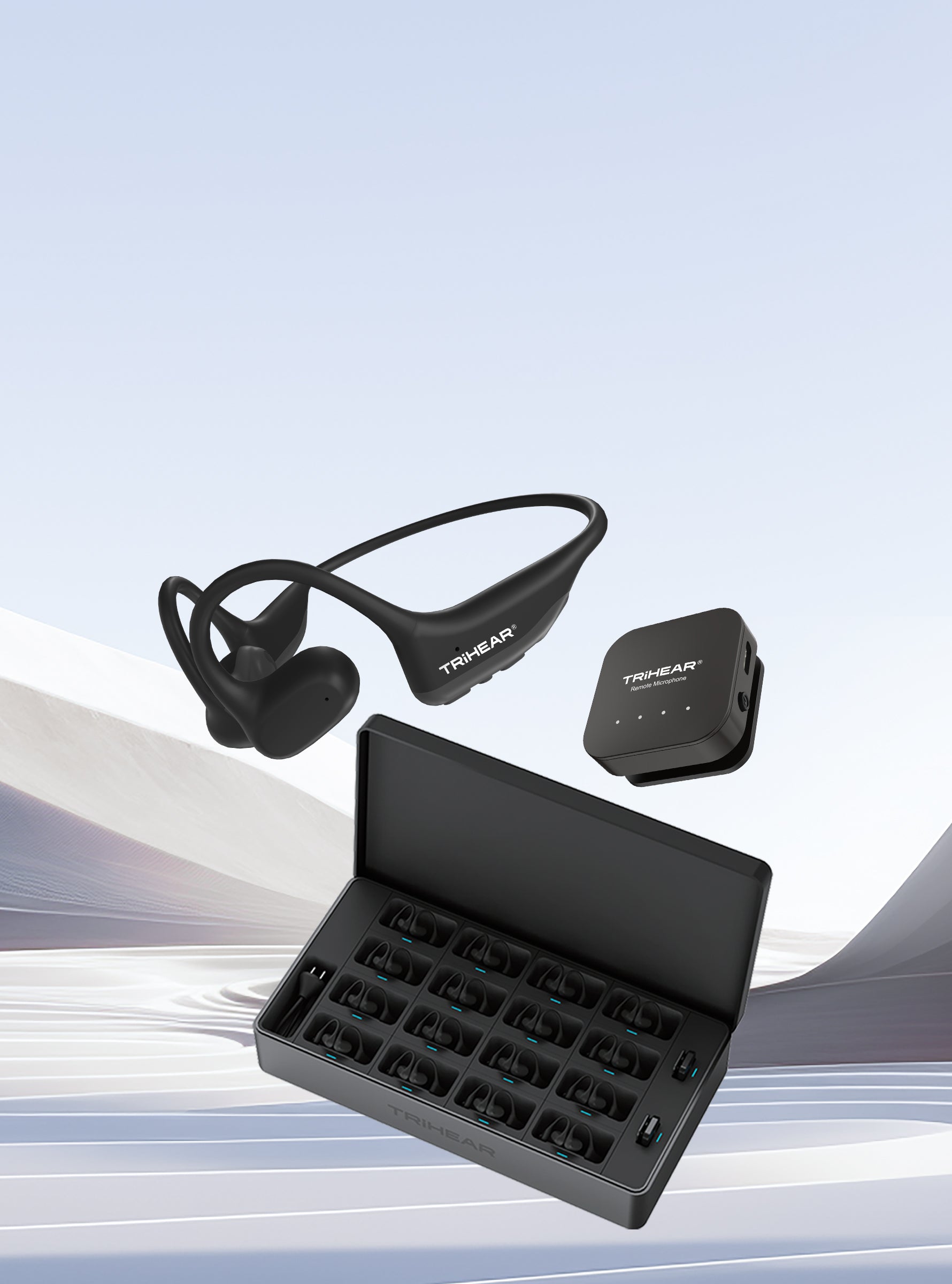 Trihear Convo 提高他们参与对话的能力。允许用户根据自己的聆听需求调整音调。遥控麦克风提高了通信的信噪比 (SNR),电声测试显示该产品具有宽带宽和低失真。
