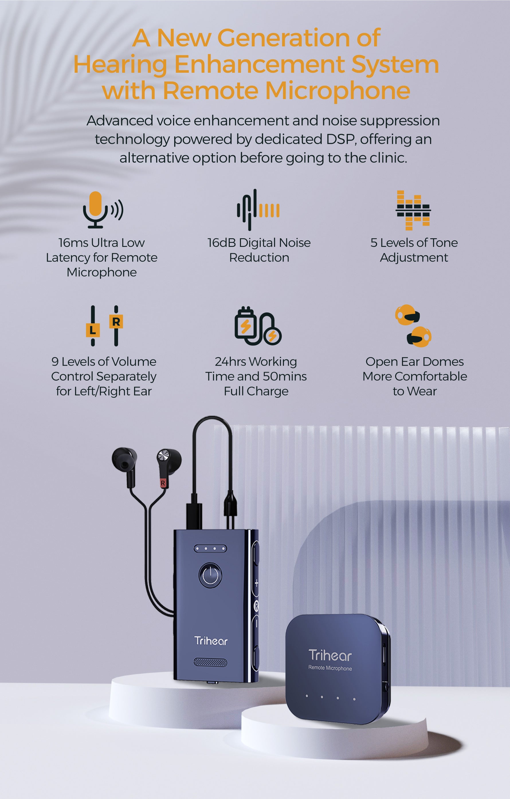 Trihear Convo 可覆盖轻度至重度听力损失。但是,每个人的听力损失情况都不同,因此有些人可能感觉不到声音的舒适度。